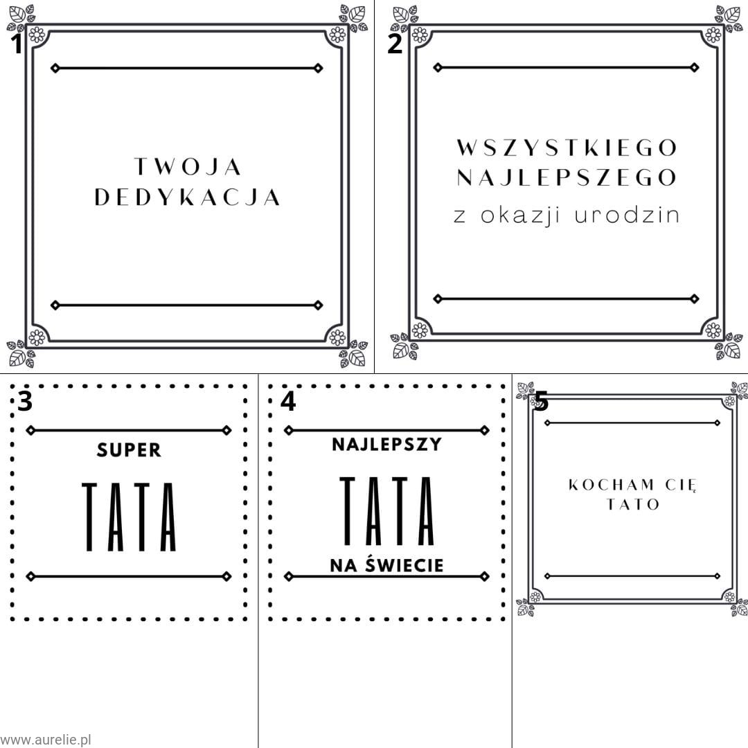 - karteczkę z gotową dedykacją na różne okazje, np. dzień taty czy urodziny (wzory są dostępne w galerii produktu)