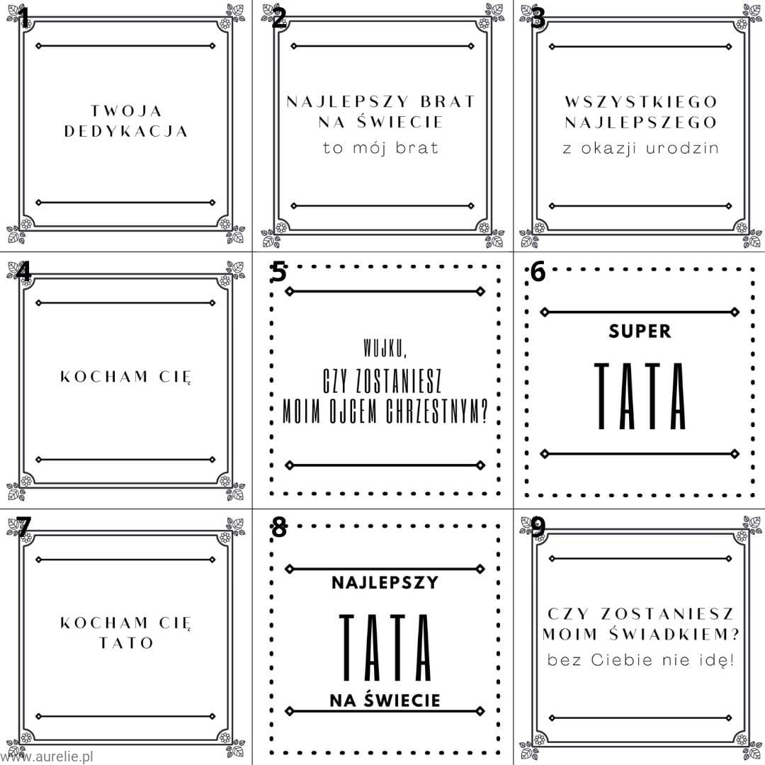 W pudełku prezentowym możemy umieścić karteczkę z dedykacją/życzeniami, które są dostępne w galerii produktu. Wystarczy, że wskażesz odpowiedni numer, wybierając go z listy rozwijanej.