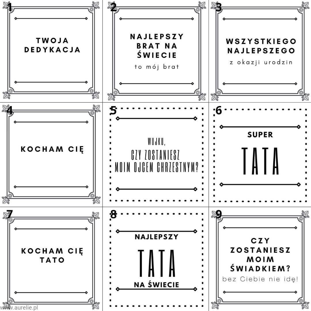 W pudełku prezentowym możemy umieścić karteczkę z dedykacją/życzeniami, które są dostępne w galerii produktu. Wystarczy, że wskażesz odpowiedni numer, wybierając go z listy rozwijanej.