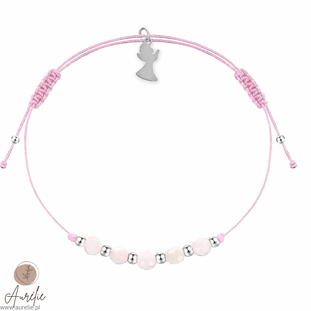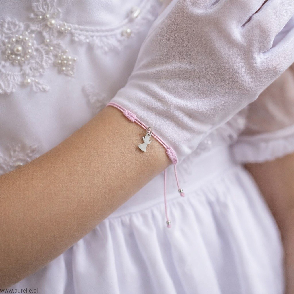 Bransoletka na komunię z aniołkiem i grawerem