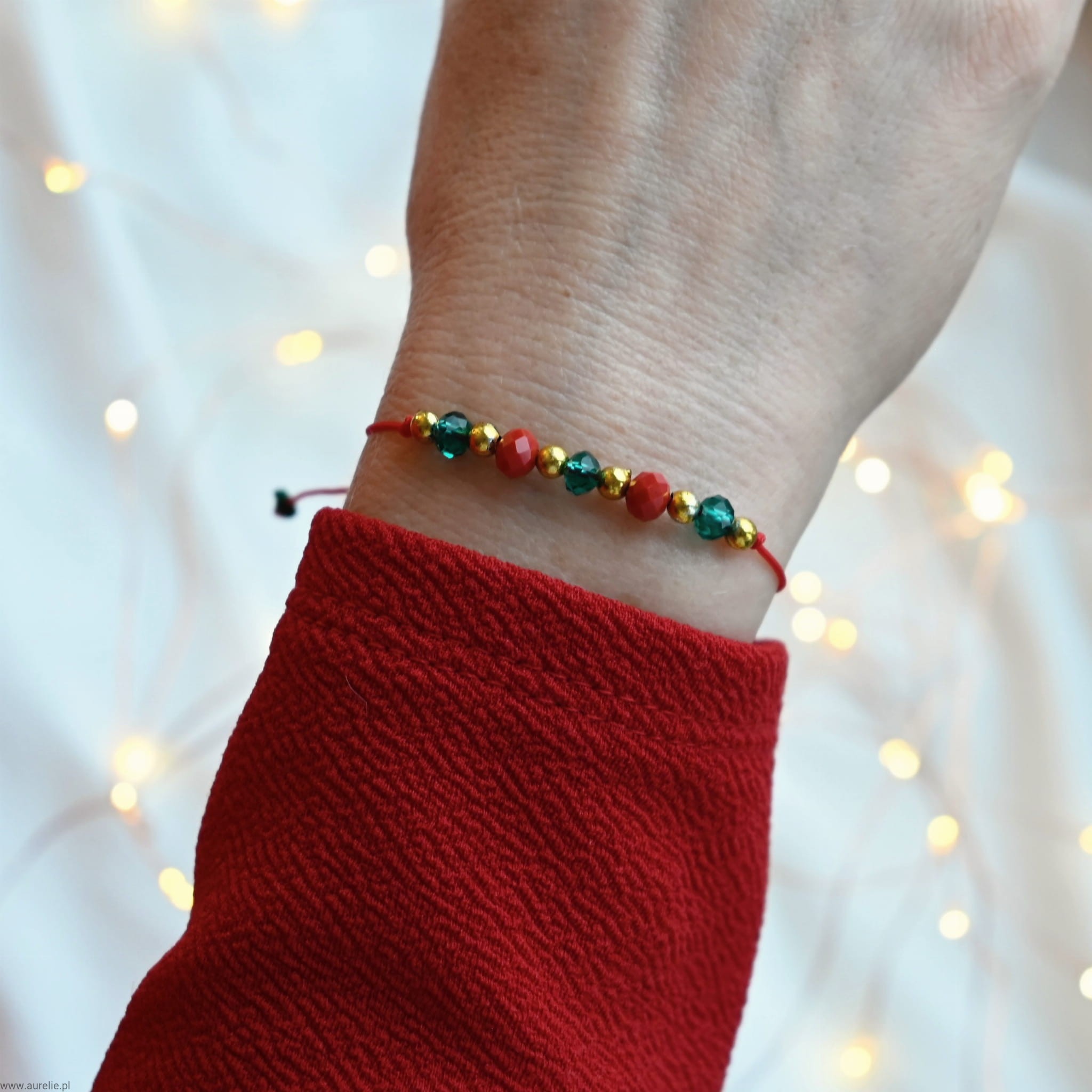 Bransoletka świąteczna posiada regulację rozmiaru.