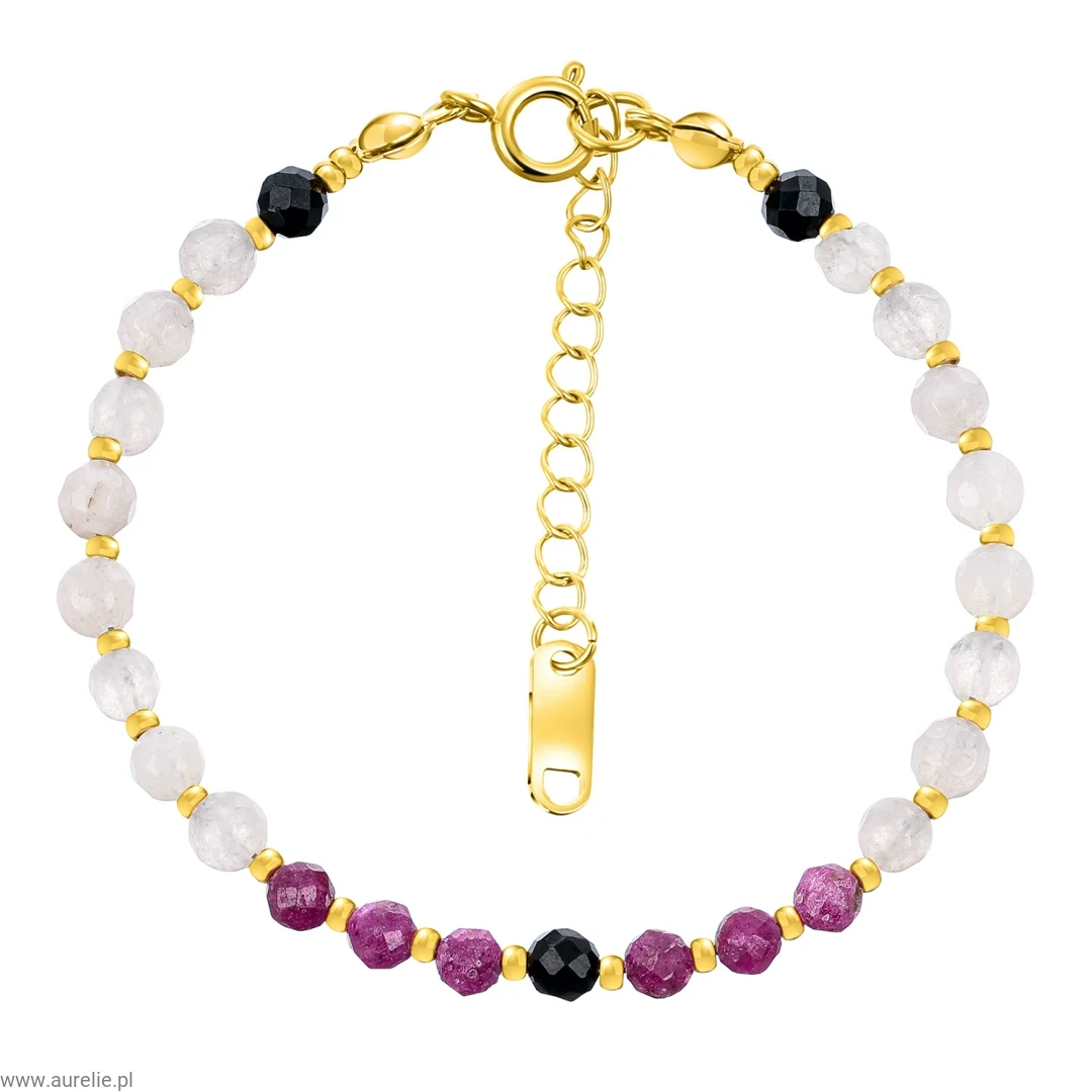 Bransoletka z czarnego turmalinu, rubinu i jadeitu